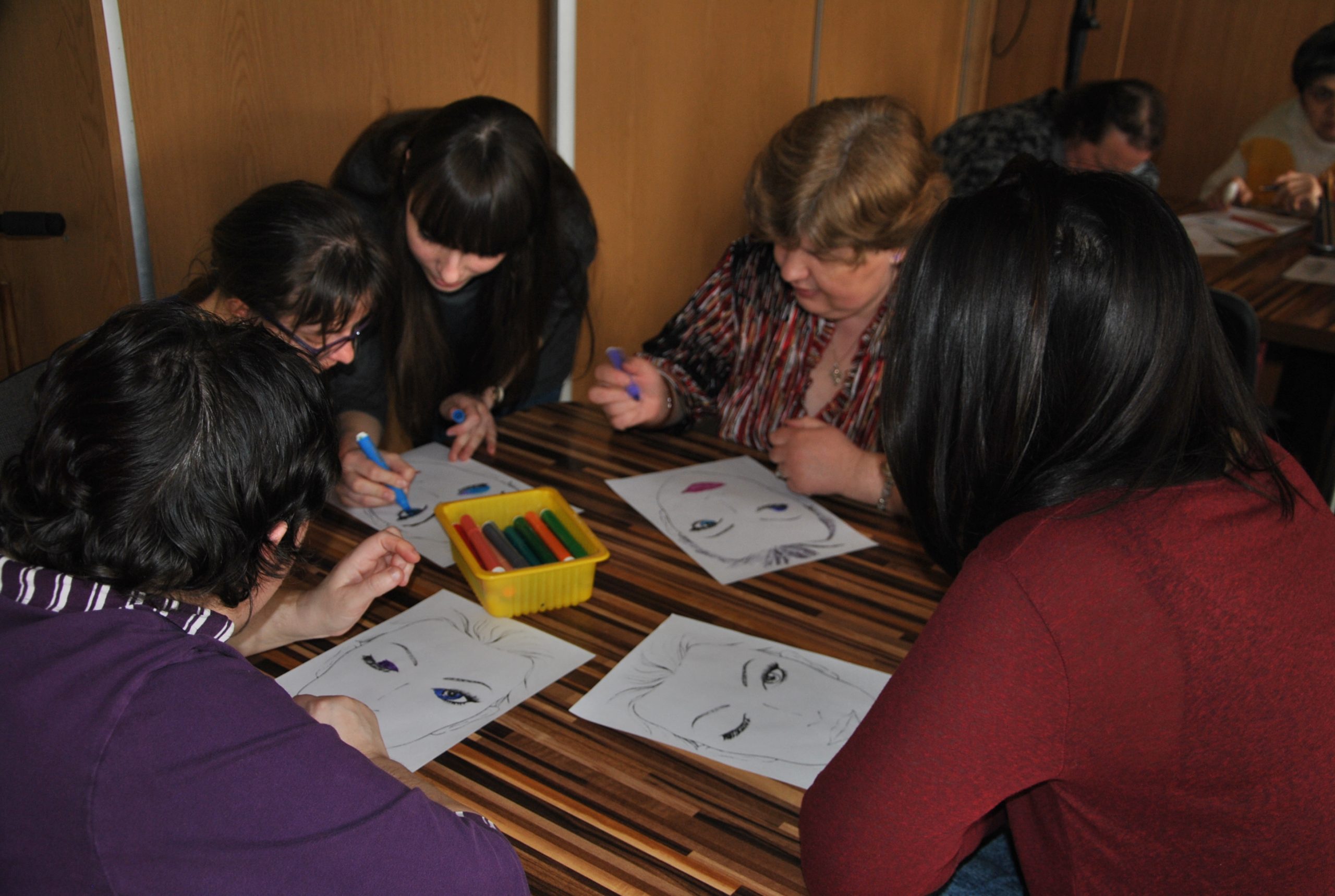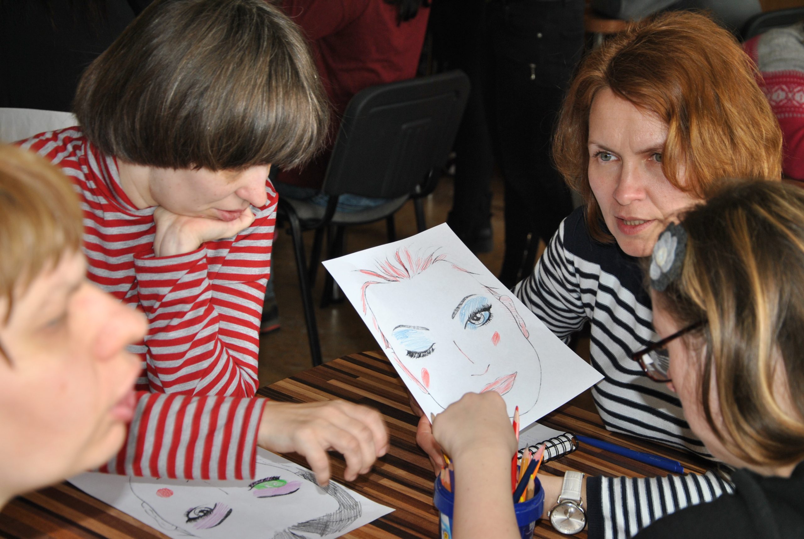 Visos kartu apžiūrėjo lankytojų sukurtus makiažus. Kiekviena darbo autorė būtinai norėjo pasiimti savo darbą. Susitikimas baigėsi žaidimais. Vieni kitiems siuntė laiškus-paspaudimus, kai kurie juos turėjo „gaudyti“. Kitame žaidime ieškojo iš rato dingusio – išėjusio už durų – žmogaus.