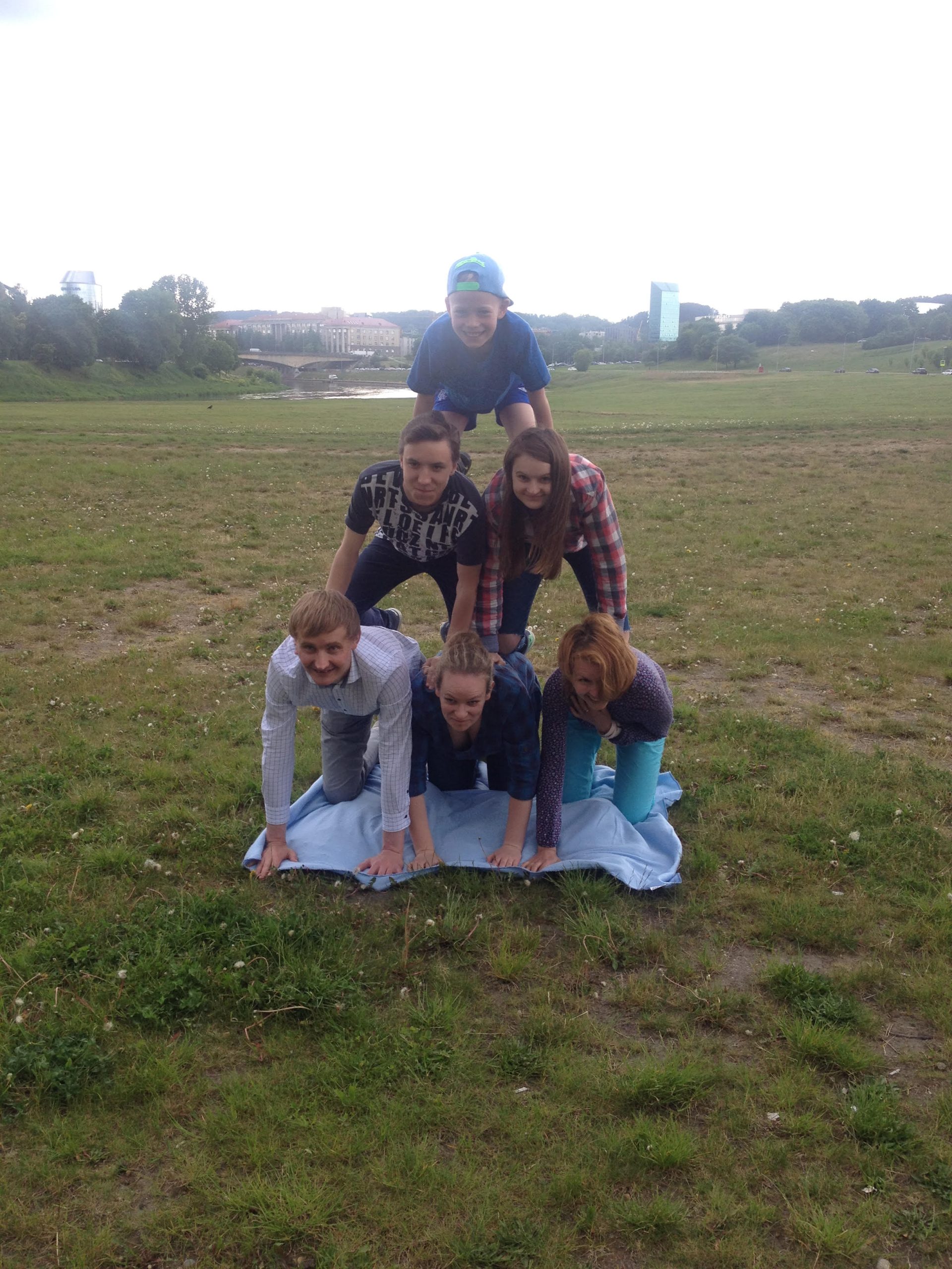 Žaidėme žaidimus „Twister“, „Alies“. Statėme piramidę iš žmonių. Mūsų susitikimą-pikniką pabaigė perkūnija ir lietus. Išsiskyrėme, tačiau tikimės – trumpam!