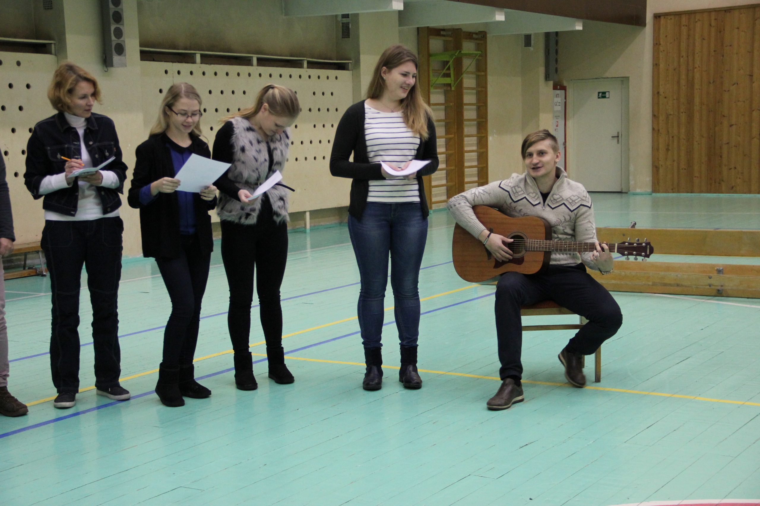 Antras centro lankytojų susitikimas – su studijų programos „Ergoterapija“ ER15 gr. studentais Evelina Adomavičiūte, Julija Chatkevičiūte, Luku Jaskoitu, Ligita Kulakauskaite, Ugne Lubaitė, Ugne Motūzaite, Viktorija Tuchto ir psichologijos dalyko dėstytoja Aurelija Kūgyte. Susitikimo pradžioje visi susipažino, trumpai papasakojo apie savo pomėgius. Tada sekė įvairūs žaidimai, veiklos, estafetės, kurias lydėjo vieni kitus palaikantys plojimai. Susitikimą užbaigė bendra daina. Dainą traukė kas kiek mokėjo, bet trepsėjo ir plojo visi.
