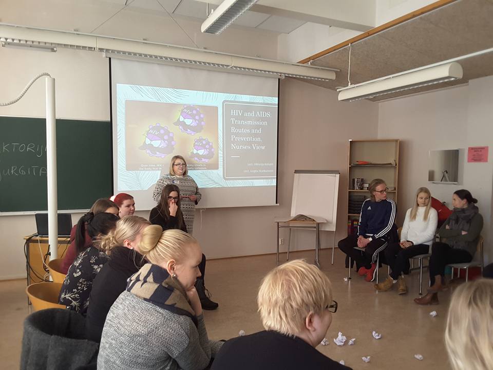 Seminarų studentams metu J. Stankūnienė ir V. Kielaitė pristatė studijų ir praktikos atlikimo galimybes Vilniaus kolegijoje, aptarė įvairias tolimesnio nuolatinio bendradarbiavimo galimybes, supažindino su ŽIV ir AIDS perdavimo keliais bei profilaktika, analizavo slaugytojo požiūrį į ligą.