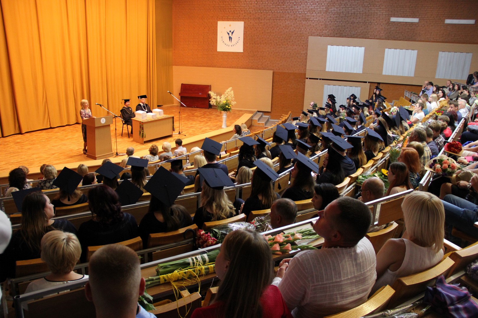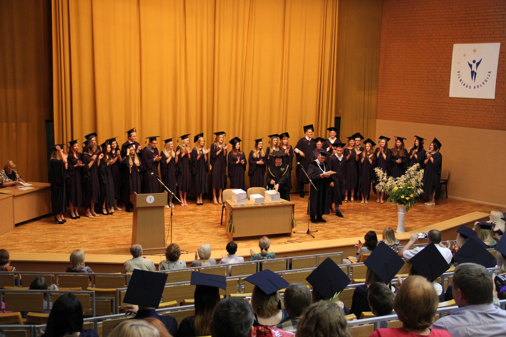Sveikinimo žodį tarė Vilniaus kolegijos direktorius dr. Gintautas Bražiūnas. Absolventus pasveikino ir geriausios kloties palinkėjo Sveikatos priežiūros fakulteto dekanė Birutė Gostevičienė bei šventėje dalyvavę svečiai: Lietuvos Respublikos Seimo narė Rimantė Šalaševičiūtė; VšĮ Vilniaus miesto klinikinės ligoninės gydytoja dietologė Jūratė Dobrolovskienė; VšĮ Vilniaus miesto klinikinės ligoninės Mikrobiologinių tyrimų laboratorijos vyresnioji mikrobiologijos laborantė Živilė Kučinskienė; Vaikų ligoninės, VšĮ Vilniaus universiteto ligoninės Santaros klinikų filialo, Vaikų fizinės medicinos ir reabilitacijos skyriaus vyresnioji gydytoja, l. e. skyriaus vedėjo pareigas Daiva Šatkutė.