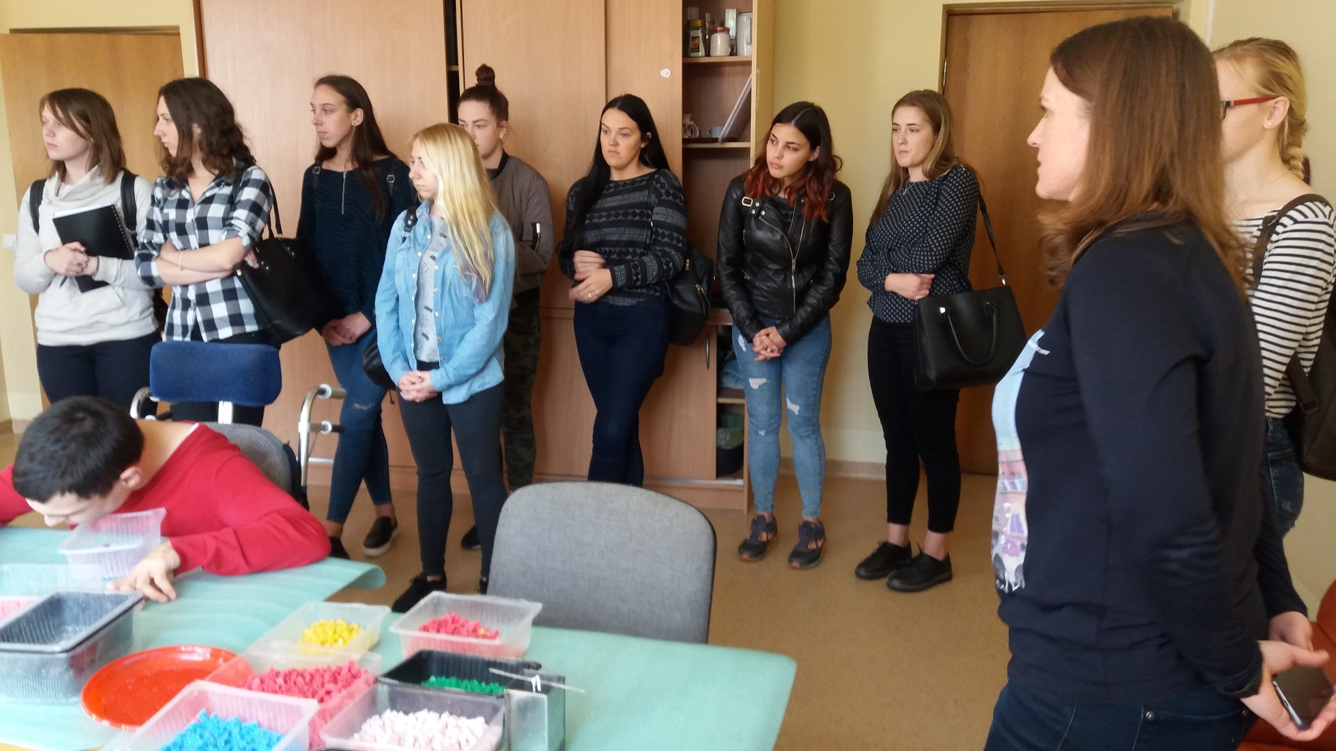 2017 m. rugsėjo 25 d. studijų programos „Ergoterapija“ ER16 gr. studentai kartu su lektore Aurelija Kūgyte, dėstančia jiems psichologijos dalyką, lankėsi dienos centre „Šviesa“.