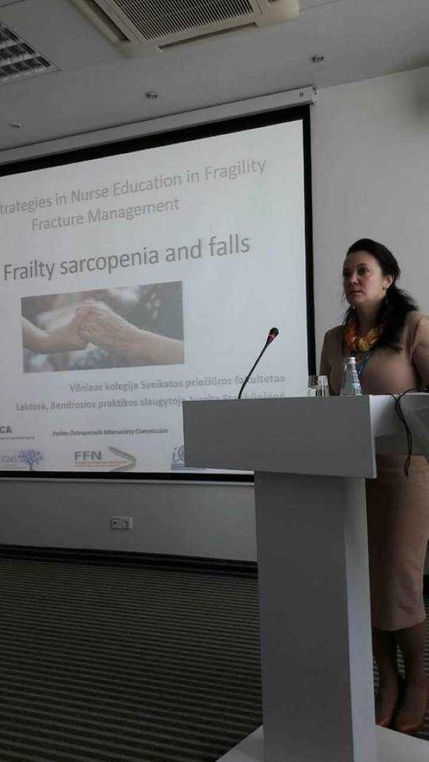 2018 m. balandžio 27 d. Vilniuje, viešbutyje „Radisson Blu Hotel Lietuva“, vyko 14-asis Lietuvos ortopedų-traumatologų draugijos suvažiavimas. Suvažiavimo slaugytojų sesijoje dalyvavo ir skaitė pranešimus Vilniaus kolegijos Sveikatos priežiūros fakulteto Slaugos katedros vedėja, lektorė Jurgita Stankūnienė ir lektorė Milda Kuskienė. Dr. Julie Santy-Tomlinson iš Mančesterio universiteto (Jungtinė Karalystė) suvažiavime pristatė projektą „Trapių kaulų lūžių valdymas – nauja strategija slaugytojų mokyme“ (“NEW STRATEGIES IN NURSE TRAINING IN FRAGILITY FRACTURE MANAGEMENT”). Projekto dalyviai iš JAV, Švedijos, lektoriai iš Vilniaus, Kauno pristatė pranešimus apie trapių kaulų lūžius ir ortogeriatrinę slaugą. Lektorė Milda Kuskienė skaitė pranešimą „Osteoporozė ir trapių kaulų lūžiai“, o lektorė Jurgita Stankūnienė – „Senatvinis silpnumas, sarkopenija ir griuvimai“.