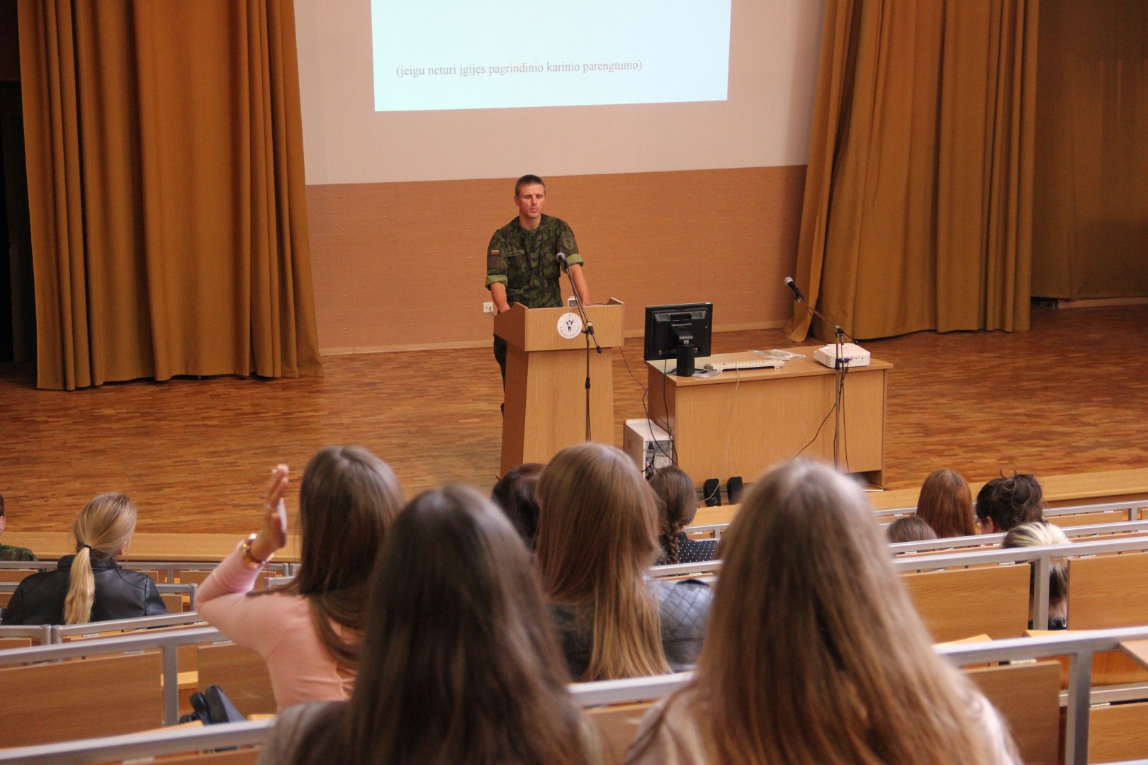 2018 m. rugsėjo 18 d. Sveikatos priežiūros fakulteto aktų salėje įvyko susitikimas su Lietuvos kariuomenės Dr. Jono Basanavičiaus karo medicinos tarnybos atstovais. Seržantas Vaidas Mantulis supažindino studentus su šios tarnybos uždaviniais, specifinėmis funkcijomis, suteikiamomis lengvatomis. Paaiškino, kaip tapti profesinės karo tarnybos kariu. Pabrėžė, kad ypatingai laukiami būsimi diplomuoti bendrosios praktikos slaugytojai, galintys save išbandyti baigiamąją praktiką atlikę Dr. Jono Basanavičiaus karo medicinos tarnybos padaliniuose, o vėliau 11 savaičių trukmės specialistų kursų dėka gali tobulinti kvalifikaciją ir kilti karjeros laiptais. „Karių sveikata yra svarbiausia“ – teigė Vaidas.