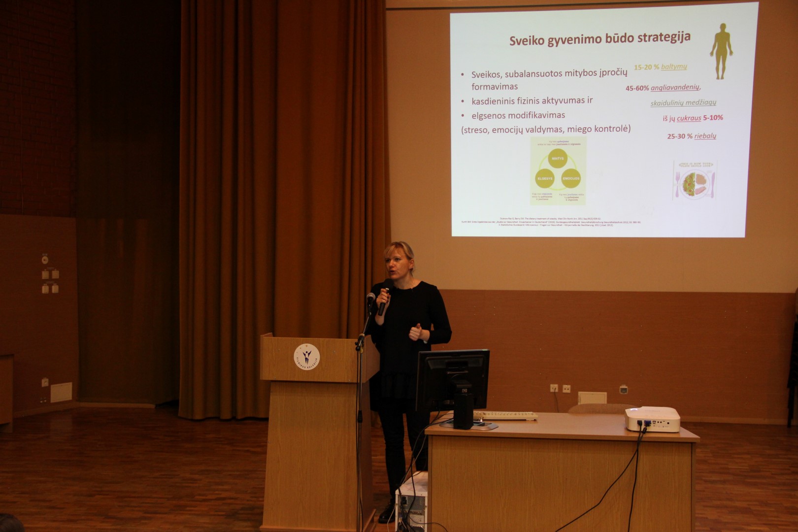 Lapkričio 7 d. Sveikatos priežiūros fakultete buvo minima Europos sveikos mitybos diena. Šia proga vyko popietė-seminaras „Tinkamas maitinimasis studentui ir dėstytojui – iššūkis?“, kurio tikslas buvo orientuotas į protinį darbą dirbančių asmenų – studentų ir dėstytojų – maitinimąsi. Seminare pranešimą skaitė Lietuvos dietologų draugijos prezidentė, gydytoja dietologė dr. Rūta Petereit, kuri pateikė tinkamo maitinimosi rekomendacijas. „Dietetikos“ studijų programos DT16 grupės studentės Estera Asačiovaitė ir Karolina Grigonytė pristatė atlikto tyrimo apie SPF dėstytojų ir studentų maitinimosi įpročius rezultatus. DT17 grupės studentės Lugnė Gervytė, Agnė Dudzinskaitė, Eglė Vilkelytė ir Kornelija Varevičiūtė skaitė pranešimus apie maisto ir maisto medžiagų teigiamą ir neigiamą poveikį organizmui.