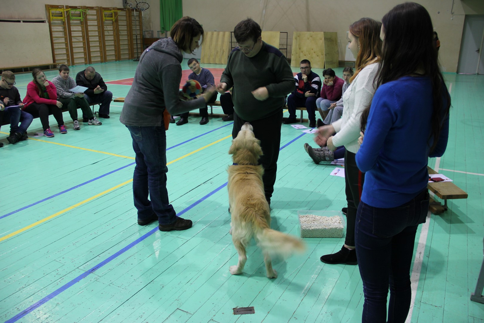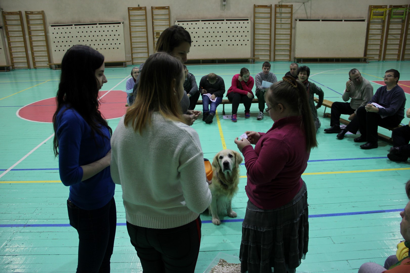 Studijų programos „Ergoterapija“ ER18 grupės studentė Veslava Citovič Rul organizavo ir lapkričio 26 d. Sveikatos priežiūros fakulteto sporto salėje vedė kaniterapijos užsiėmimą dienos centro „Šviesa“ lankytojams bei ER18 grupės studentams. Veslavai padėjo ER18 grupės studentės A. Žilionytė ir E. Vitkauskaitė. Renginio metu labai svarbų vaidmenį atliko auksaspalvis retriveris Gongas. Šis nuostabus šuo priklauso kaniterapijos asociacijai, yra išlaikęs terapinio šuns egzaminą. Užduotys buvo įvairios: skirtos ir smulkiajai motorikai, ir pažintiniams procesams lavinti. Šventės dalyviams kilo daug teigiamų emocijų tiek stebint, kaip šuo atlieka įvairias komandas (pvz. „sėst“ „greta“ „duok penkis“ „duok labas“), tiek glostant jį arba stebint, kaip Gongas kartu dalyvauja užsiėmime.