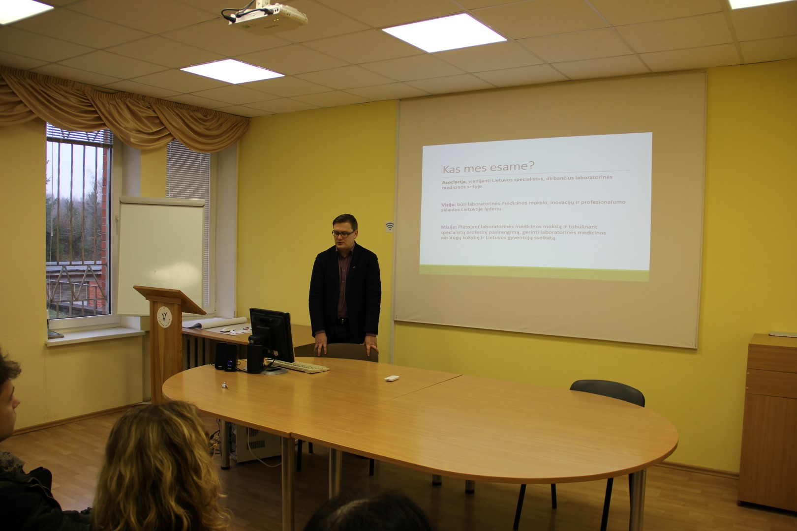 2018 m. gruodžio 11 d. Sveikatos priežiūros fakultete vyko „Biomedicininės diagnostikos“ studijų programos studentų ir dėstytojų susitikimas su Lietuvos laboratorinės medicinos draugijos (LLMD) Vilniaus filialo pirmininku dr. Valdu Baniu. Susitikimo metu dr. V. Banys trumpai apžvelgė LLMD istoriją nuo jos įsteigimo iki šių dienų, supažindino su draugijos struktūra ir veikla. Pranešėjas pabrėžė biomedicinos technologų narystės svarbą draugijoje, paaiškino sąlygas ir tvarką, kaip tapti LLMD nariu.