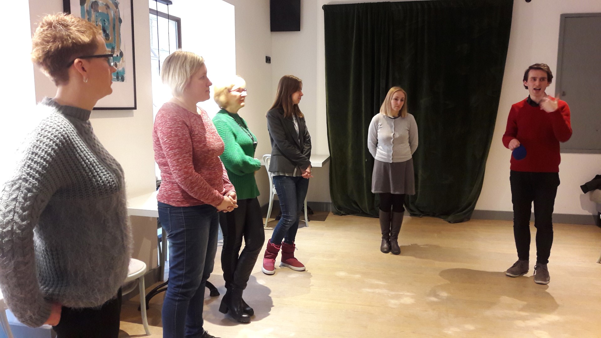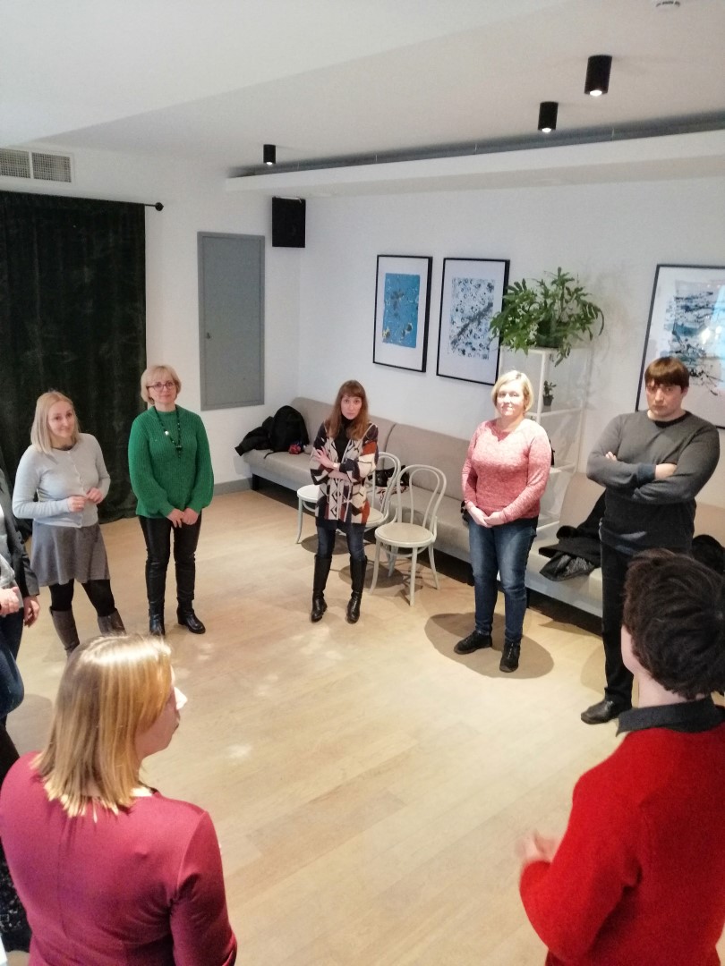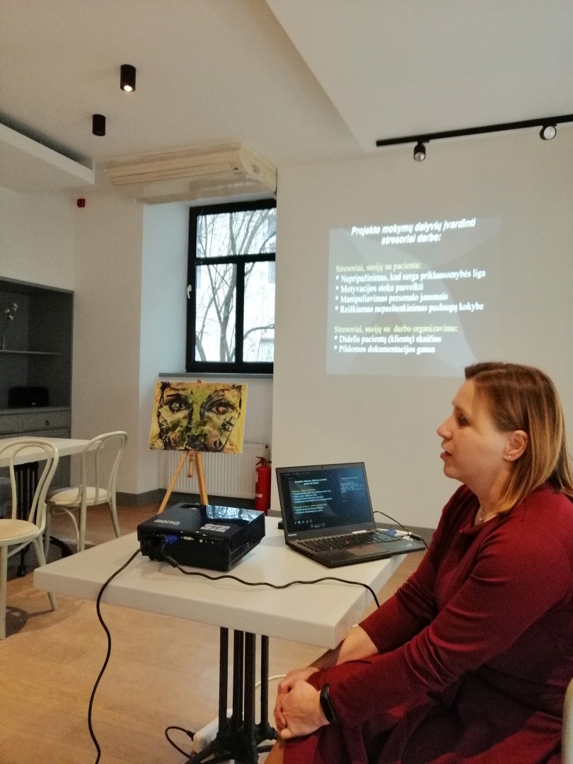 Susitikime dalyvavo įvairių Vilniaus miesto sveikatos priežiūros ir socialinės integracijos įstaigų atstovai, kurie dirba su sveikstančiais nuo priklausomybių asmenimis. Renginio metu VšĮ „Socialiniai paramos projektai“ projektų vadovė Agnė Bykova pristatė reintegracijos modelį, vykdomą salotų bare „Mano Guru“. Vilniaus kolegijos Sveikatos priežiūros fakulteto lektorė Aurelija Kūgytė pristatė, kaip meno metodai pagerina psichikos sveikatą, siekiant išvengti perdegimo sindromo. Vilniaus kolegijos Sveikatos priežiūros fakulteto lektorė Milda Kuskienė apžvelgė projekto metu vykusių mokymų dalyvių atsiliepimus. Aktorius Artūras Dubaka pravedė praktinę dalį pagal M. Čechovo metodiką.