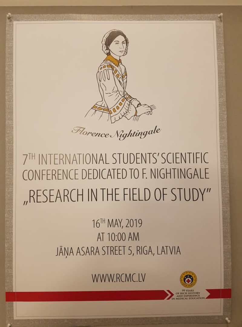 Tarptautinės savaitės metu 2019 gegužės 16 d vyko tarptautinė studentų mokslinė konferencija „Studijų srities tyrimai“, skirta Florence Nightingale paminėti. Konferencijoje pranešimą „Slaugos studijų programos studentų emocinės būsenos praktikos metu“ skaitė Vilniaus kolegijos studijų programos „Bendrosios praktikos slauga“ studentė Evelina Bacevič.