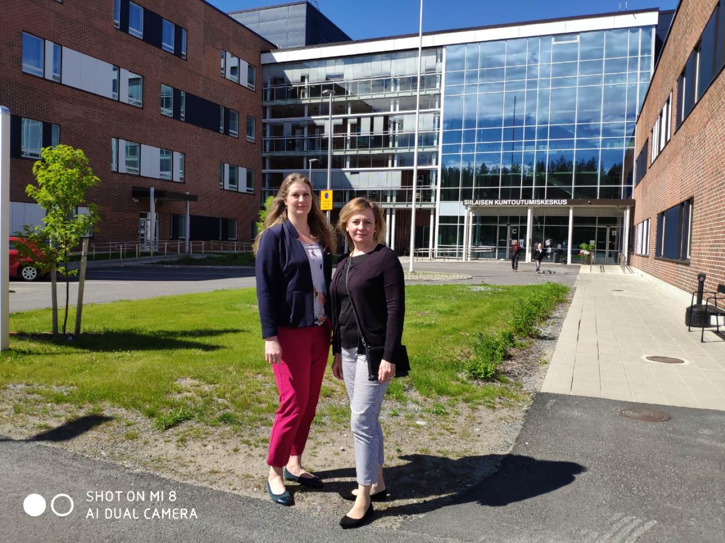 2019 m. birželio 11–13  dienomis Sveikatos priežiūros fakulteto Reabilitacijos katedros vedėja, docentė dr. Milda Žukauskienė ir lektorė Kristina Žukienė pagal Erasmus+ mainų programą skaitė paskaitas Karelijos taikomųjų mokslų universitete, Suomijoje. Tai buvo pirmas fakulteto dėstytojų vizitas šioje institucijoje, kuri laikoma viena geriausių kineziterapeutų rengimo institucijų Suomojoje ir ypač pasižymi aukštais kokybės standartais. Prieš dėstymo vizitą buvo inicijuota ir pasirašyta bendradarbiavimo sutartis, numatanti tolimesnes bendradarbiavimo galimybes ne tik „Kineziterapijos“, bet ir „Bendrosios praktikos slaugos“ studijų programų studentams ir dėstytojams. Todėl vizito metu taip pat aptarėme dėstytojų ir studentų mainų plėtros galimybes, susipažinome su studentų praktikos atlikimo bazėmis – Voimala ir Siilaisen reabilitacijos centru, tyrimų atlikimo galimybėmis Fysiotikka klinikoje, simuliacinės laboratorijos teikiamomis galimybėmis. Susitikimų su studentais ir dėstytojais metu pristatėme studijų ir praktikos atlikimo galimybės Vilniaus kolegijoje.