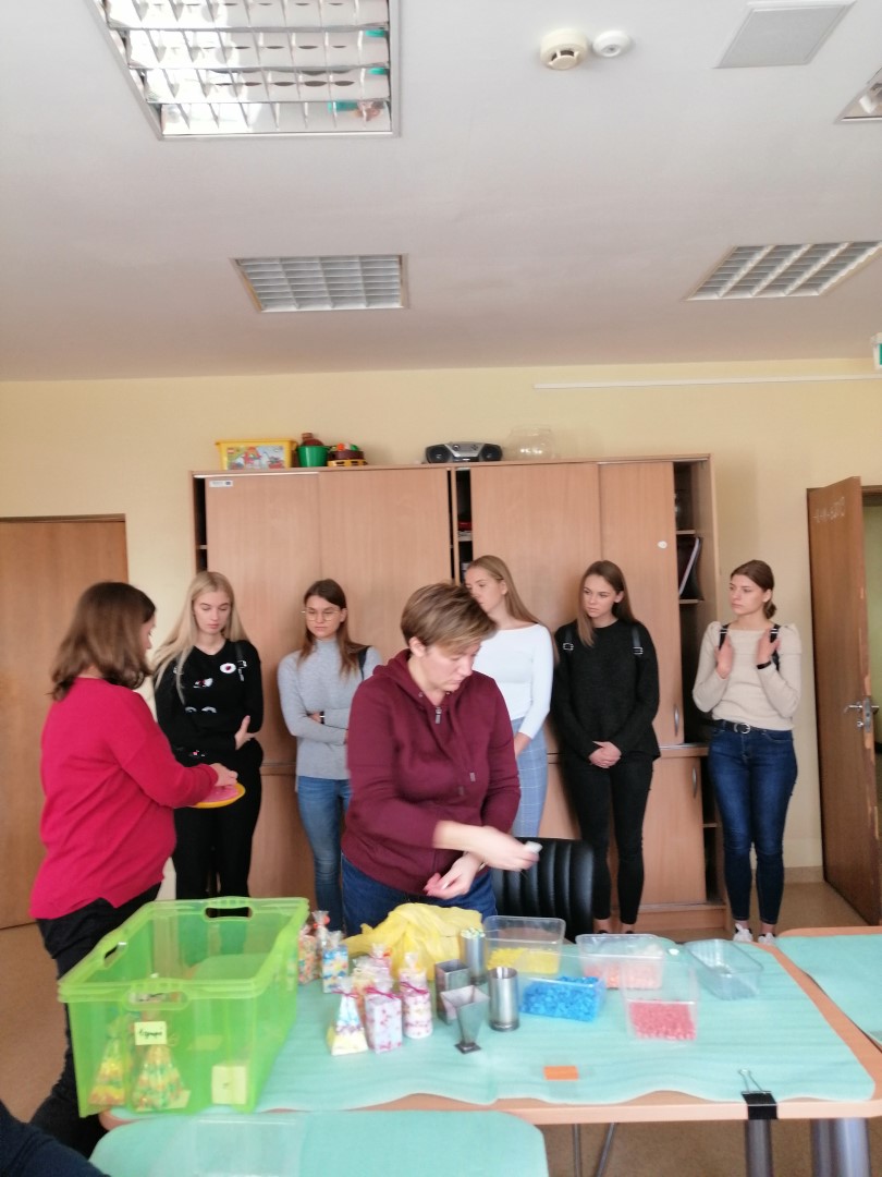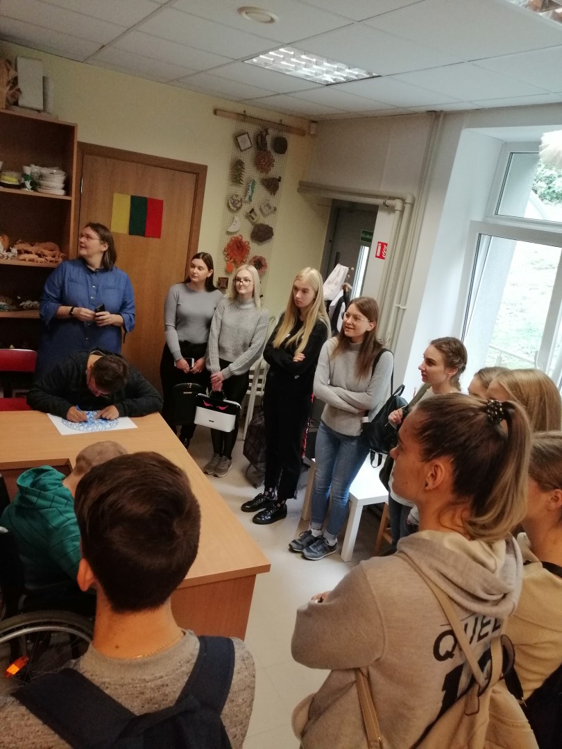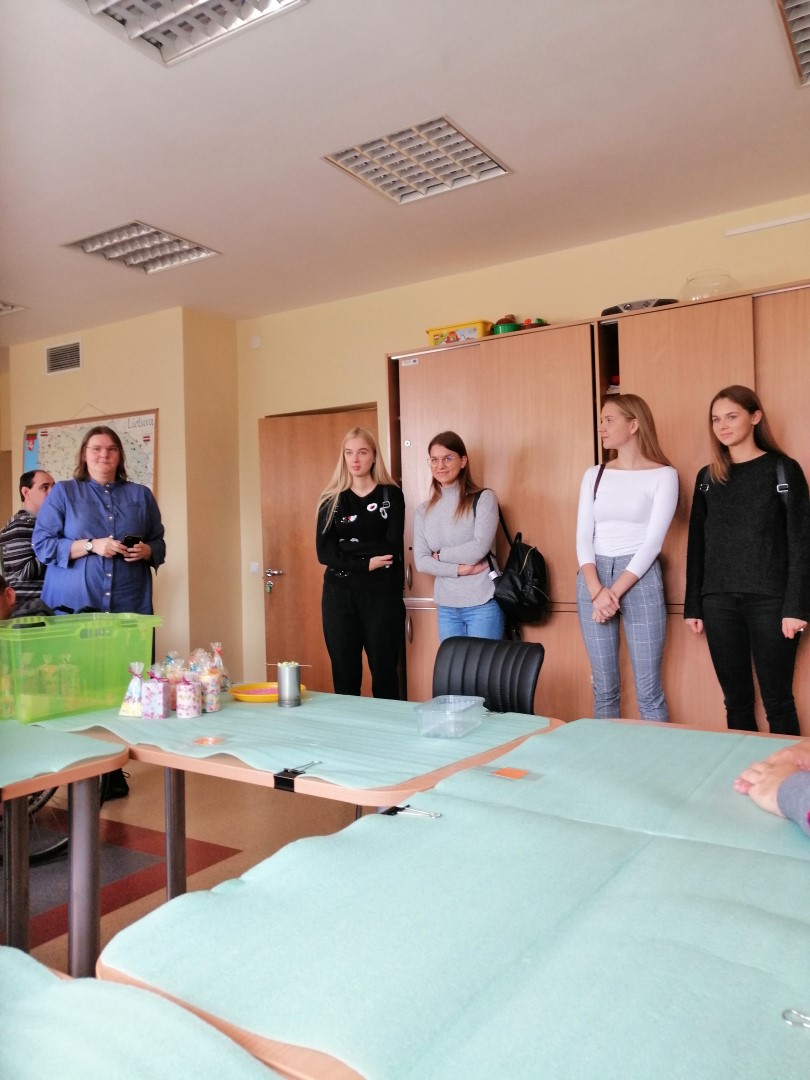 Studentus ir lektorę pasitiko vyriausioji socialinė darbuotoja Daiva Ivanauskaitė. Ji aprodė erdves, kur lankytojai praleidžia laiką: sporto salę, keramikos dirbtuves bei susipažino su veikla, lavinančia smulkiąją motoriką – žvakių gamyba iš perdirbto parafino.