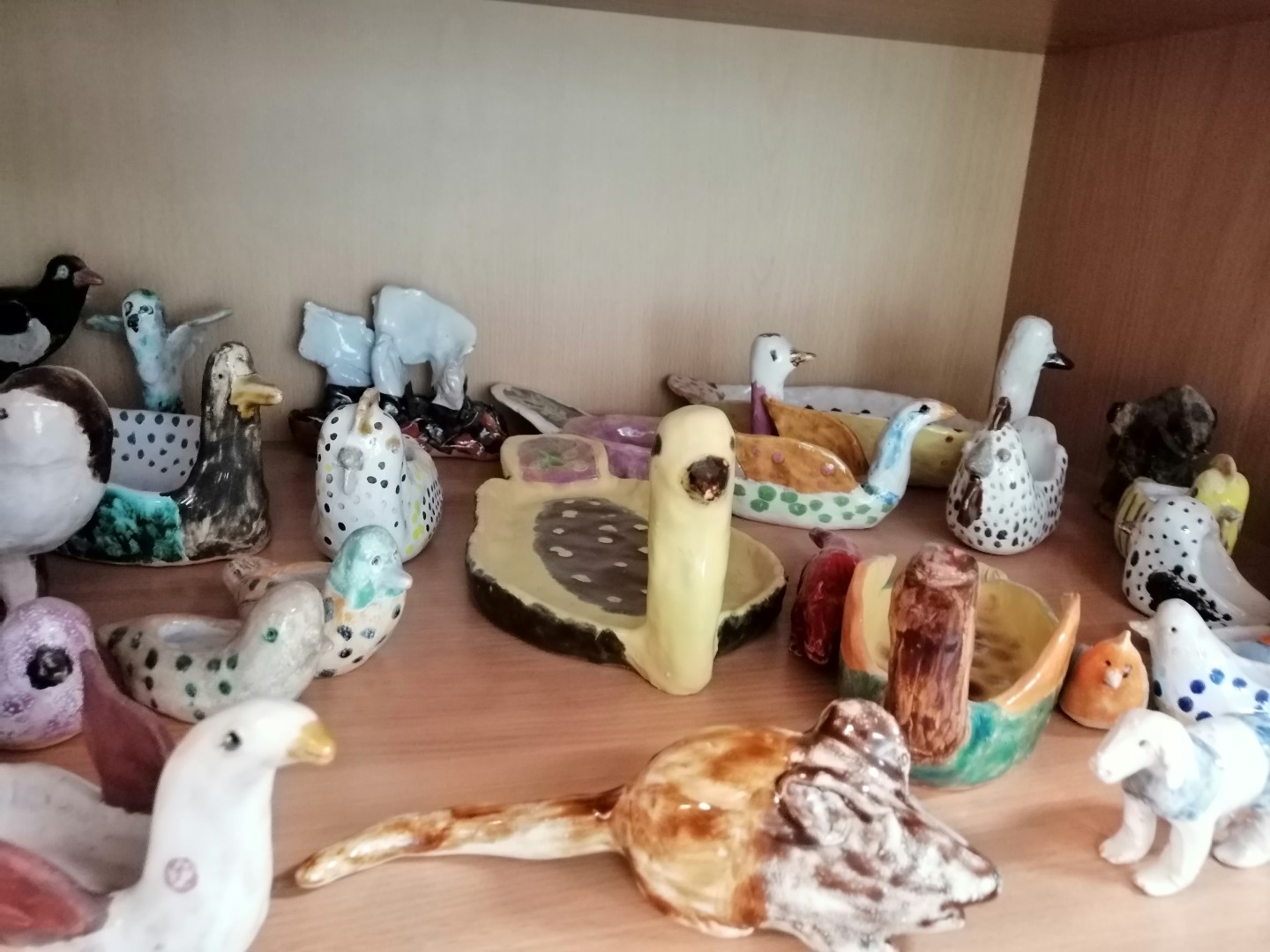 Galima buvo pasigėrėti lankytojų Linos, Martyno bei Aurelijaus keramikos darbais parodoje. Studentai stebėjo parodos atidarymą bei išgirdo apie įdomų projektą: keli lankytojai nupiešė lėkščių raštus, pagal kuriuos kiti centro lankytojai nulipdys lėkštes.