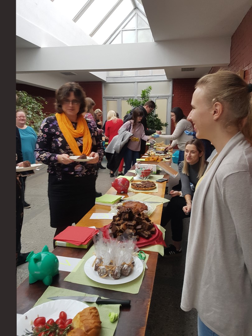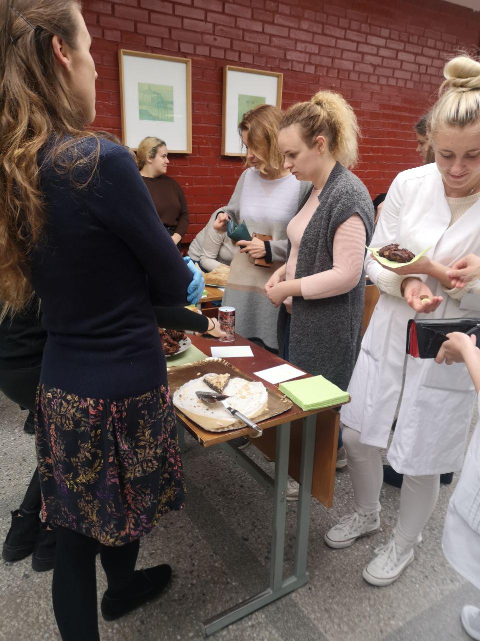 Ilgosios pertraukos metu už savanorišką kainą buvo galimybė įsigyti studentų ir dėstytojų pagamintų pyragų, pyragaičių bei kitų desertų. O jų buvo įvairiausių: saldžių, nesaldžių, tradicinių, su netikėtais įdarais. Surinktos lėšos bus skirtos gyvūnų globos namams.