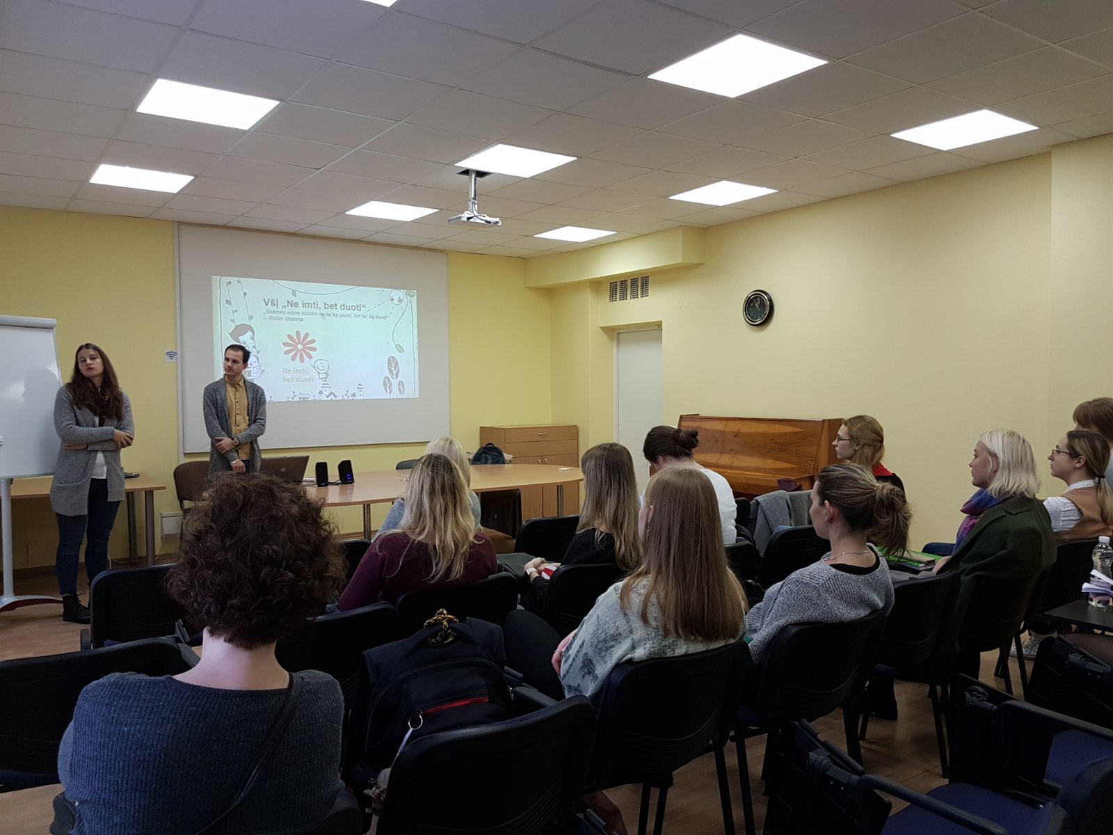 2019 m. lapkričio 4 d. Sveikatos priežiūros fakultete Vilniaus kolegijos Sveikatos priežiūros fakulteto studentų mokslinė draugija organizavo studentams skirtą seminarą „Savanorystė, kuri įkvepia“, kurį vedė organizacijos „Ne imti, bet duoti“ atstovai Toma Bradūnaitė ir Lukas Dvilevičius. Jie supažindino su veikiančios savanorystės humanitarine veikla vaikų globos namuose, dienos centruose, socialinę riziką patiriančiose šeimose. Toma ir Lukas pasidalino savo asmenine patirtimi, kasdieniais iššūkiais, suteikė informaciją apie veiklos privalumus bei atsakė į seminaro dalyviams iškilusius klausimus.