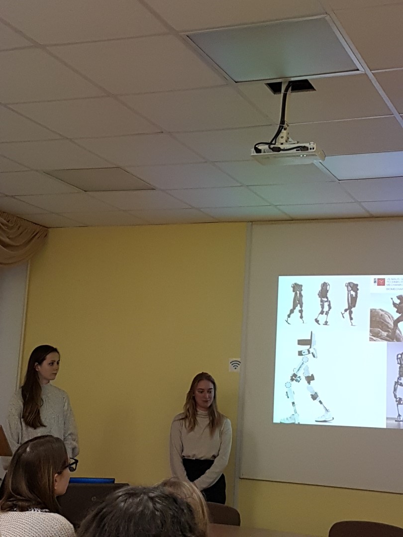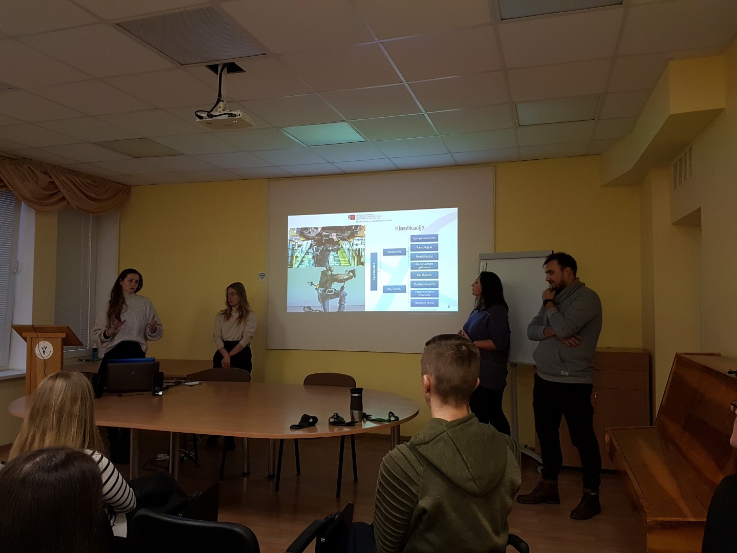 2019 m. lapkričio 21 d. Sveikatos priežiūros fakultete vyko studijų programos „Ergoterapija“ ER18 grupės studentams skirta diskusija „Kūno padėčių keitimas ir pagalbinės priemonės“, kurioje dalyvavo Vilniaus Gedimino technikos universiteto studijų programos „Biomechanikos inžinerija“ studentai ir Lietuvos paraplegikų asociacijos instruktorius Jaroslav Milevskij. Vilniaus Gedimino technikos universiteto studentai pristatė egzoskeletų veikimo principus, panaudojimo galimybes ir naujoves, susijusias su egzoskeletų taikymu ne tik reabilitacijos srityje, bet ir karo pramonėje, aptarė egzoskeletų praktinius taikymo principus reabilitacijos srityje bei kasdieniame gyvenime. Jaroslav Milevskij papasakojo apie kūno padėties svarbą, pasidalino savo patirtimi apie aktyvaus tipo vežimėlio pritaikymą ir fizinės aplinkos barjerų įveikimą.