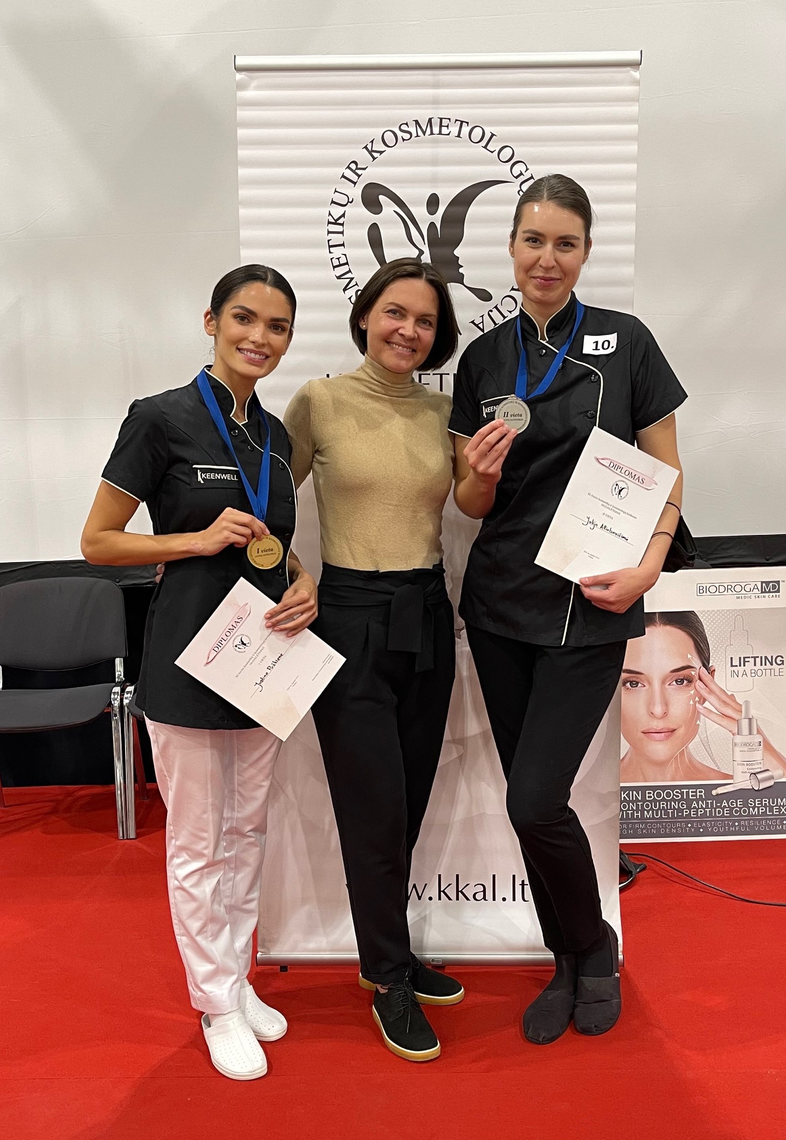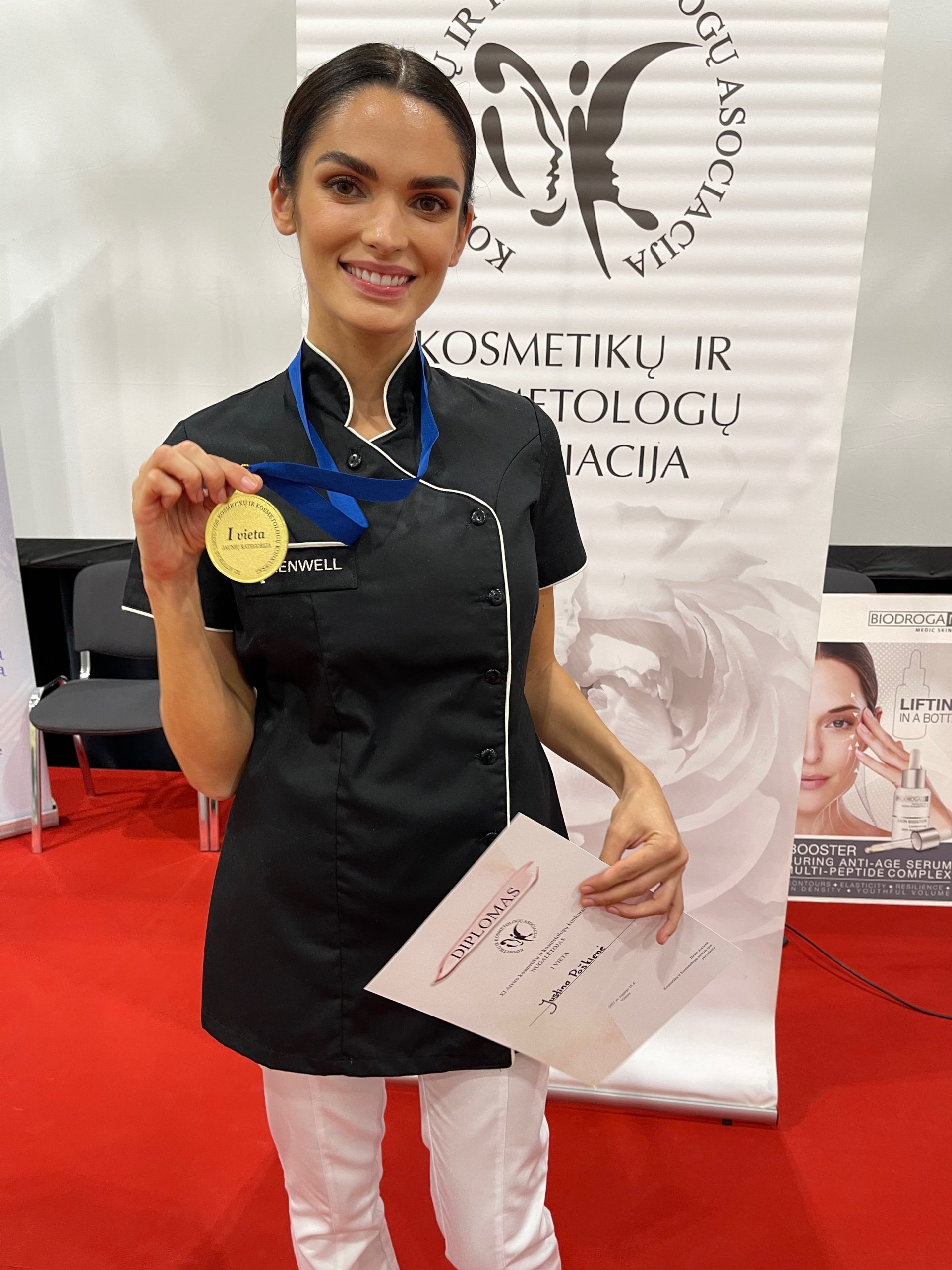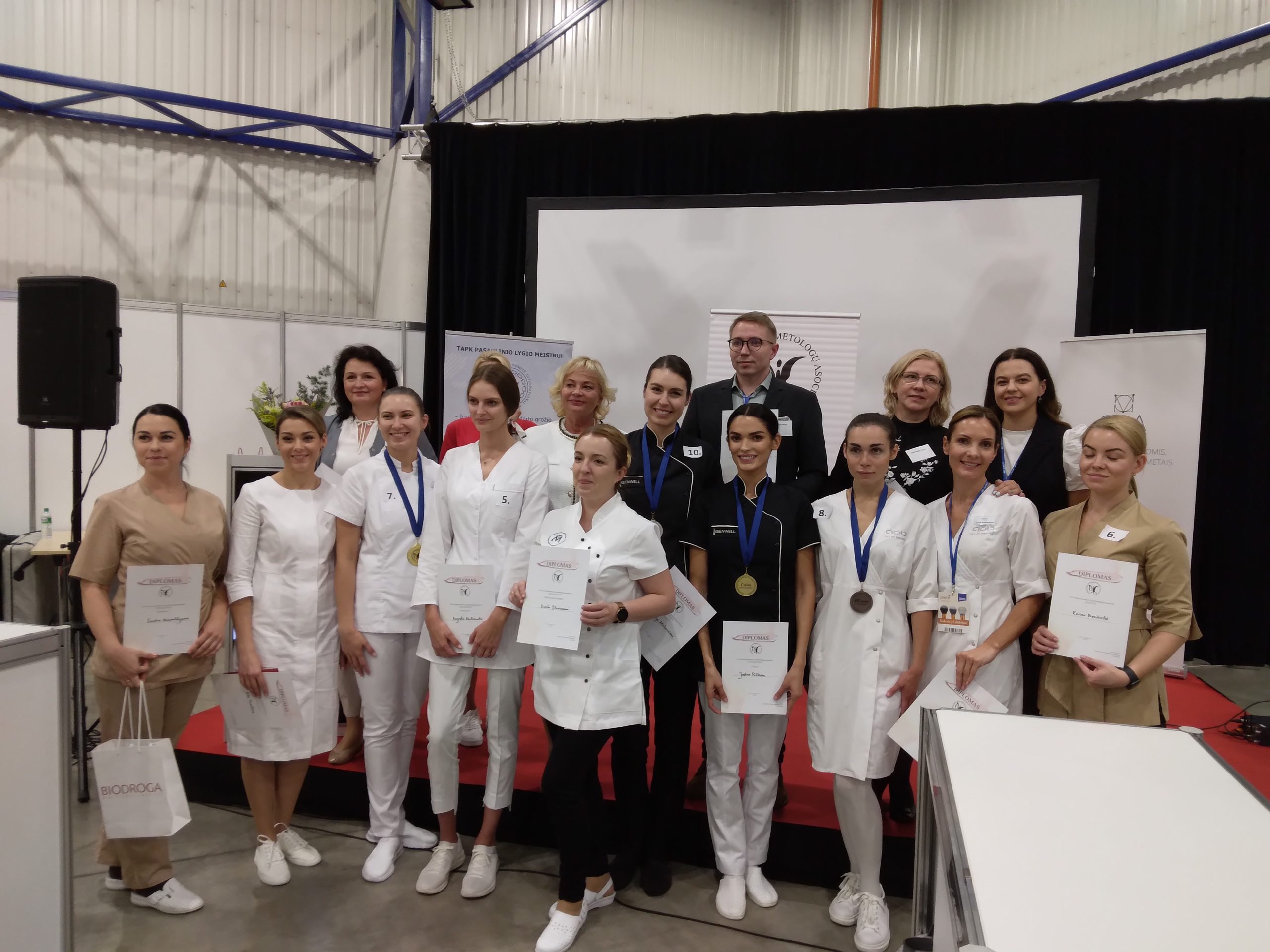 Džiaugiamės profesionalų kategorijos rungtyje dalyvavusių VK SPF Grožio terapijos katedros absolvenčių laimėjimais: Dovilė Janeikaitė laimėjo I-ąją vietą, Ritai Tamulienei (Anikiejevai) įteikta kategorijos nominacija.