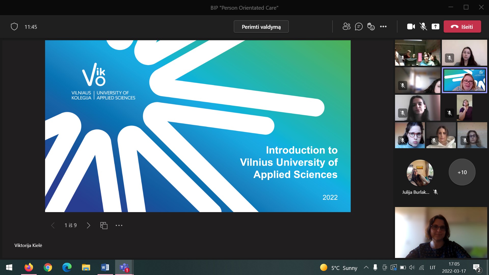 Vilniaus kolegijos Sveikatos priežiūros fakultete pradedama vykdyti mišrioji intensyvioji programa (BIP, angl. Blended intensive programme) „Patient orientated Care“, kurios veiklos truks iki balandžio mėnesio pabaigos. Programą organizuoja VK SPF kartu su partneriais iš Belgijos (Free university Ilja Prigogine Brussels) ir Latvijos (Red Cross Medical College of Riga Stradins University). Pirmojo susitikimo metu 25 studentai susipažino, susiskirstė komandomis ir sužinojo pirmosios užduoties reikalavimus. Tai tik pirmieji žingsniai, daug naudingų ir smagių akimirkų dar laukia ateityje.