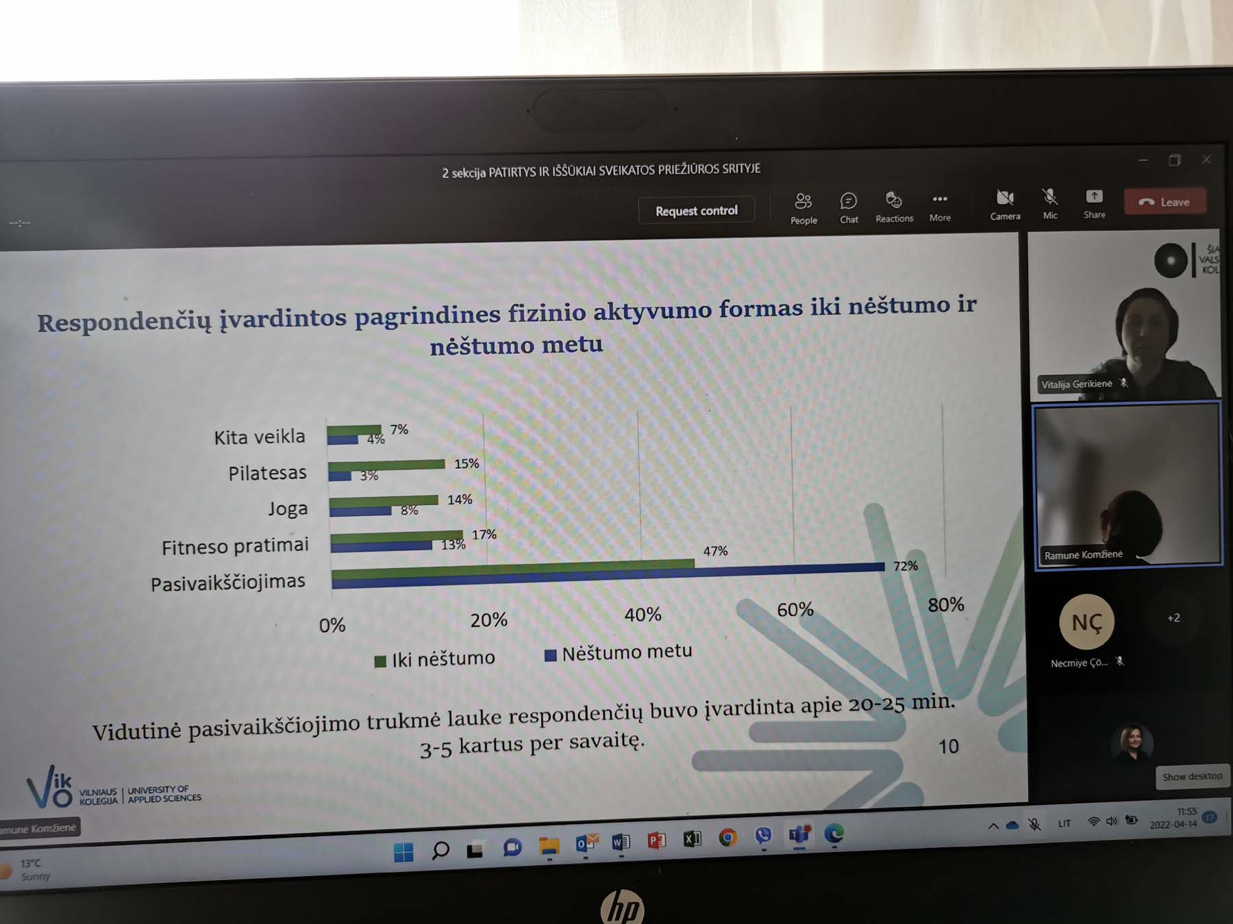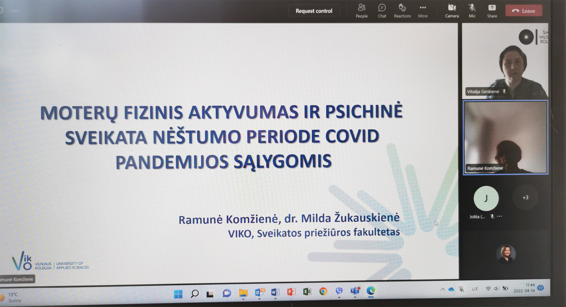 Po plenarinio posėdžio darbas buvo tęsiamas 4-iose sekcijose. Antrojoje sekcijoje „Patirtys ir iššūkiai sveikatos priežiūros srityje“ (angl.“ Experience and Challenges In Healthcare Area”) VK Sveikatos priežiūros fakulteto dėstytojos skaitė pranešimą „Moterų fizinis aktyvumas ir psichikos sveikata nėštumo periodu Covid-19 pandemijos sąlygomis“ (angl. “Women’s Physical Activity and Mental Health During Pregnancy During the Covid-19 Pandemic”).