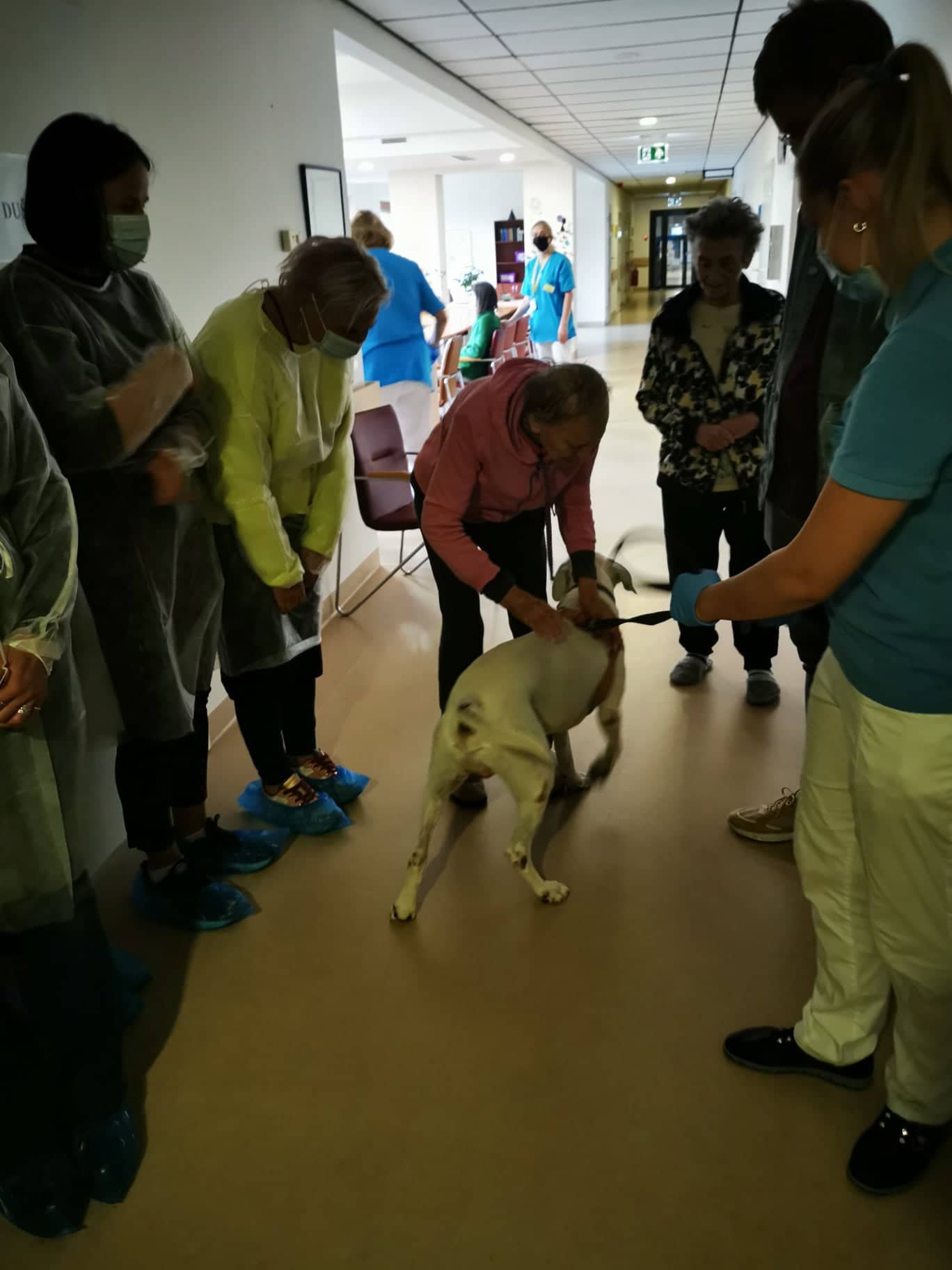 Slaugos namų „Addere Care“ personalo vadovė Kristina Bubelevičienė ir procesų vadovas Justas Mačinskas supažindino mus su slaugos namų veikla ir taikomu skandinavų modeliu. Šiltai pasitiko šuo Spaikas, slaugos namų gyventojų vadinamas Baltuoju angelu.