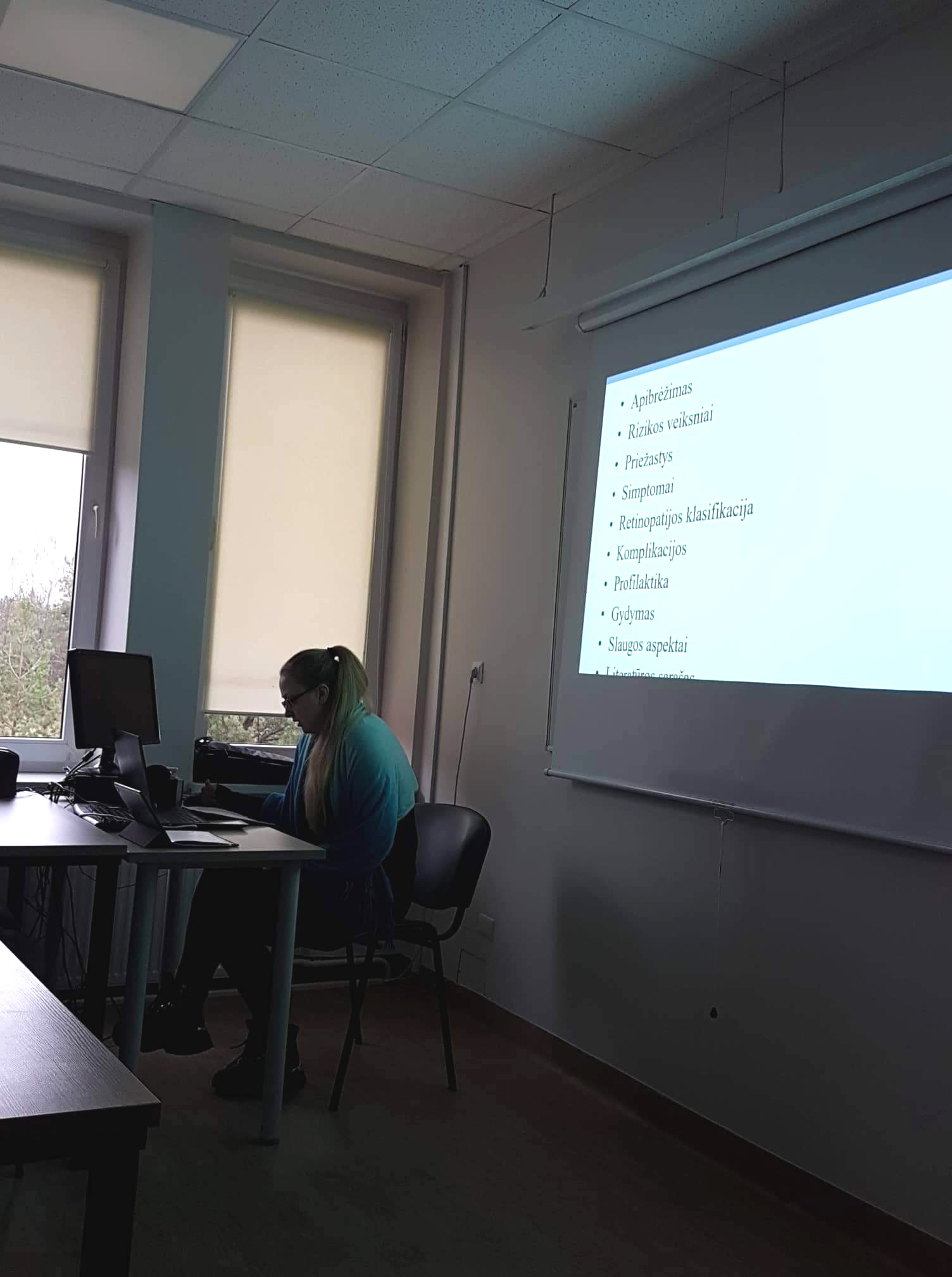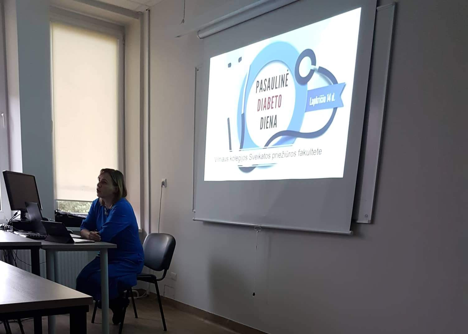 Minint šią datą įvairių studijų programų antrakursiai parengė pranešimus diabeto diagnostikos, valdymo bei komplikacijų prevencijos temomis. Studijų programos „Biomedicininė diagnostika“ antro kurso studentės Gabrielė Lavreckytė ir Dominyka Rynkevič supažindino, kokius laboratorinius tyrimus atliekant diagnozuojamas diabetas. Studijų programos „Dietetika“ antrakursės Justina Geronaitytė ir Ugnė Rožėnaitė pateikė mitybos rekomendacijas II tipo cuktiniu diabetu sergantiems pacientams. Studijų programos „Bendrosios praktikos slauga“ studentai Vestina Vaitkevičiūtė, Karolis Jočis ir Ina Jemeljanova papasakojo apie gestacinį diabetą. Diabeto komplikacijos buvo aptartos būsimųjų slaugytojų, Daivos Ragauskienės, Edvinos Bėčiūvienės, Jolitos Čyrienės ir Mildos Koverovės, pristatyme. Antrakursė slaugos studentė Irena Molis atkreipė dėmesį į diabetinės retinopatijos prevencijos svarbą, o slaugos studentė Gabrielė Rudvalytė pranešme aptarė, kokie emociniai išgyvenimai gali aptikti žmogų, kuriam diagnozuotas cukrinis diabetas.