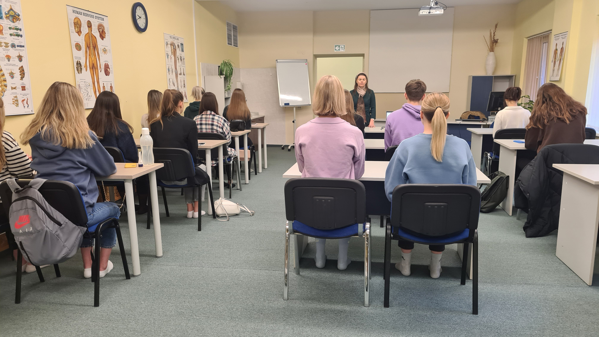 2023-03-17 d. Sveikatos priežiūros fakultete viešėjo Kristina Dorofėjė, dėmesingo įsisąmoninimo (angl. Mindfulness) lektorė, praktikė, Lietuvos įsisąmoninimu grįstos psichologijos asociacijos narė. LPD Sveikos gyvensenos pagrindai paskaitoje viešnia su studentais dalijosi žiniomis, atsipalaidavimo patarimais ir praktikomis. Moksliniais klinikiniais tyrimais įrodyta, kad dėmesingo įsisąmoninimo technika gerina psichologinę ir fizinę sveikatą, gerina atmintį, kūrybiškumą, miegą, mažina nerimą, didina psichologinį atsparumą stresui, ugdo įgūdžius sąmoningai reaguoti į streso šaltinius, didina savivertę ir santykius su kitais. Studentai aktyviai domėjosi, kaip išsiugdyti emocinės higienos įgūdžių, nes tokios žinios, patirtys didina jų emocinį bei profesinį raštingumą, galimybę padėti ne tik įtampoje, skubėjime gyvenantiems žmonėms, bet ir sau, kaip žmogui, kaip sveikatos priežiūros specialistui.