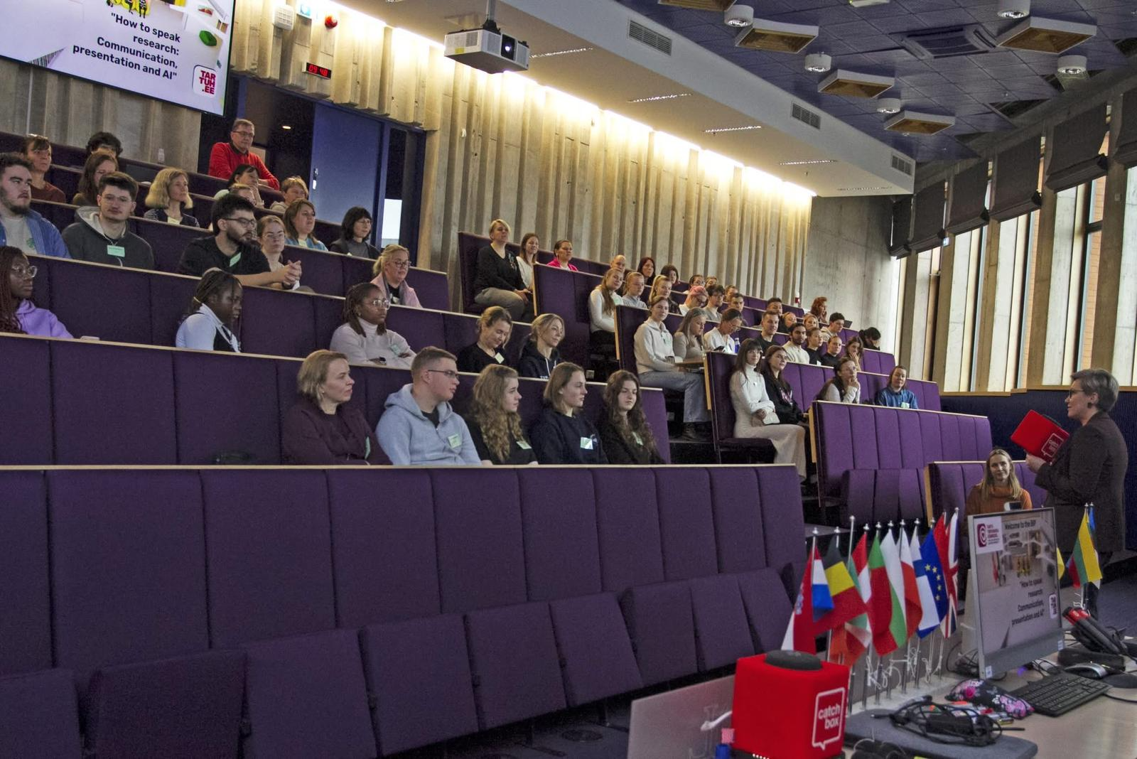 Studentai dalyvavo praktiniuose užsiėmimuose ir paskaitose, kur mokėsi pristatyti pranešimus ir efektyviai, laikantis etiškumo principų naudoti dirbtinio intelekto (DI) įrankius. Programa taip pat apėmė įvairias veiklas: ekskursiją po Tartu miestą bei susipažinimą su universiteto mokomąja baze, turą po Estijos nacionalinį muziejų, kultūros renginius ir universiteto jubiliejaus šventinius renginius.