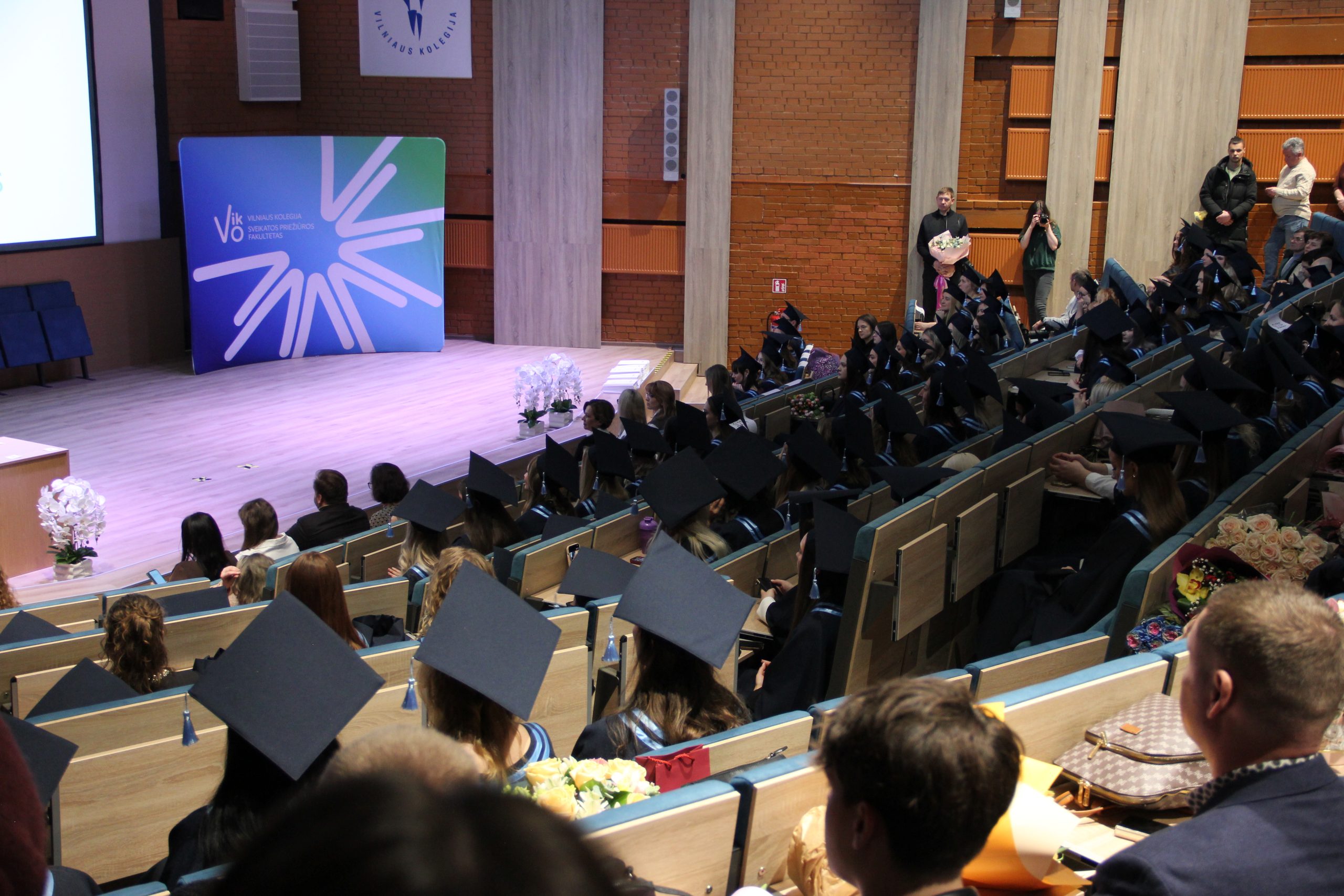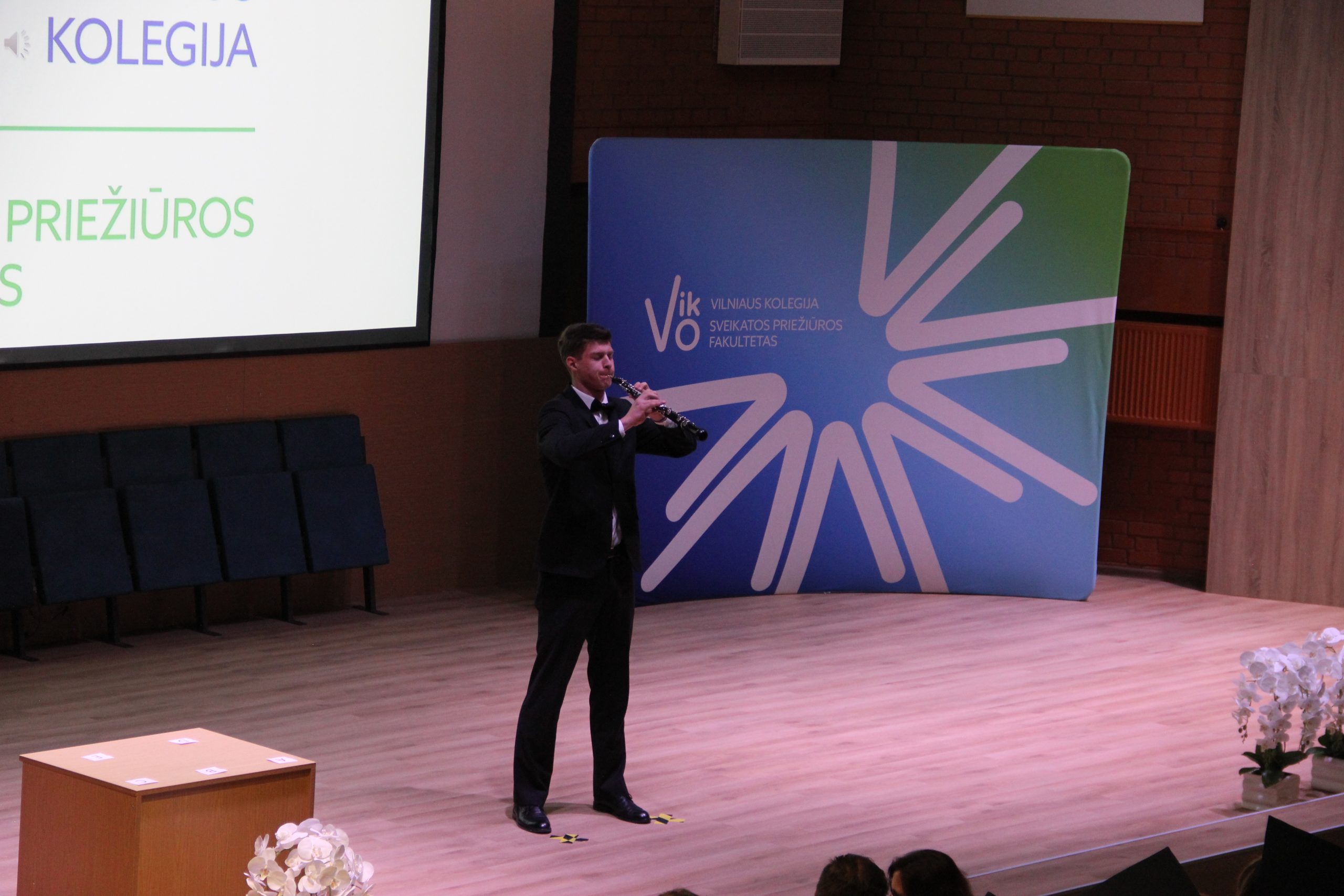 Vilniaus kolegijos direktorė dr. Žymantė Jankauskienė, sveikindama absolventus, pabrėžė ypatingą slaugytojo vaidmenį visuomenėje, susijusį ne tik su profesinėmis kompetencijomis, bet ir su lyderyste tarpdisciplininėje komandoje, kurioje slaugytojai turi unikalią galimybę bei moralinę pareigą tarnauti žmogui svarbiausiais gyvenimo momentais.