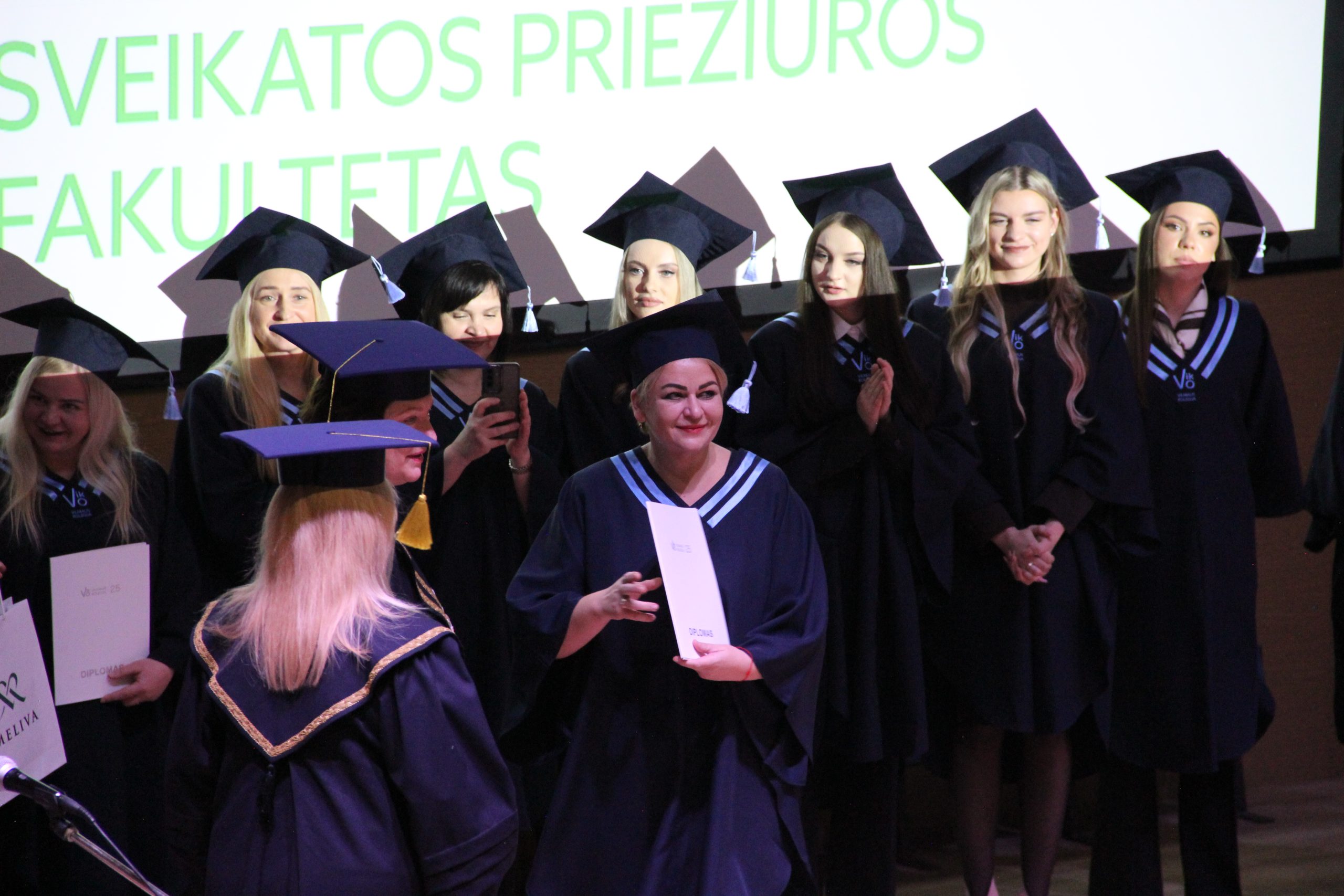 Prieš įteikiant profesionio bakalauro diplomus, Slaugos katedros vedėja Viktorija Kielė priminė Antoine de Saint-Exupery “Mažojo princo” žodžius, kad svarbiausi dalykai gyvenime matomi ne akimis, o širdimi. Ir, kad didžiausi pasiekimai gimsta tyliai: iš atkaklumo, iš vidinės atsakomybės, iš noro suprasti ir kurti, o ne tik siekti greito rezultato.