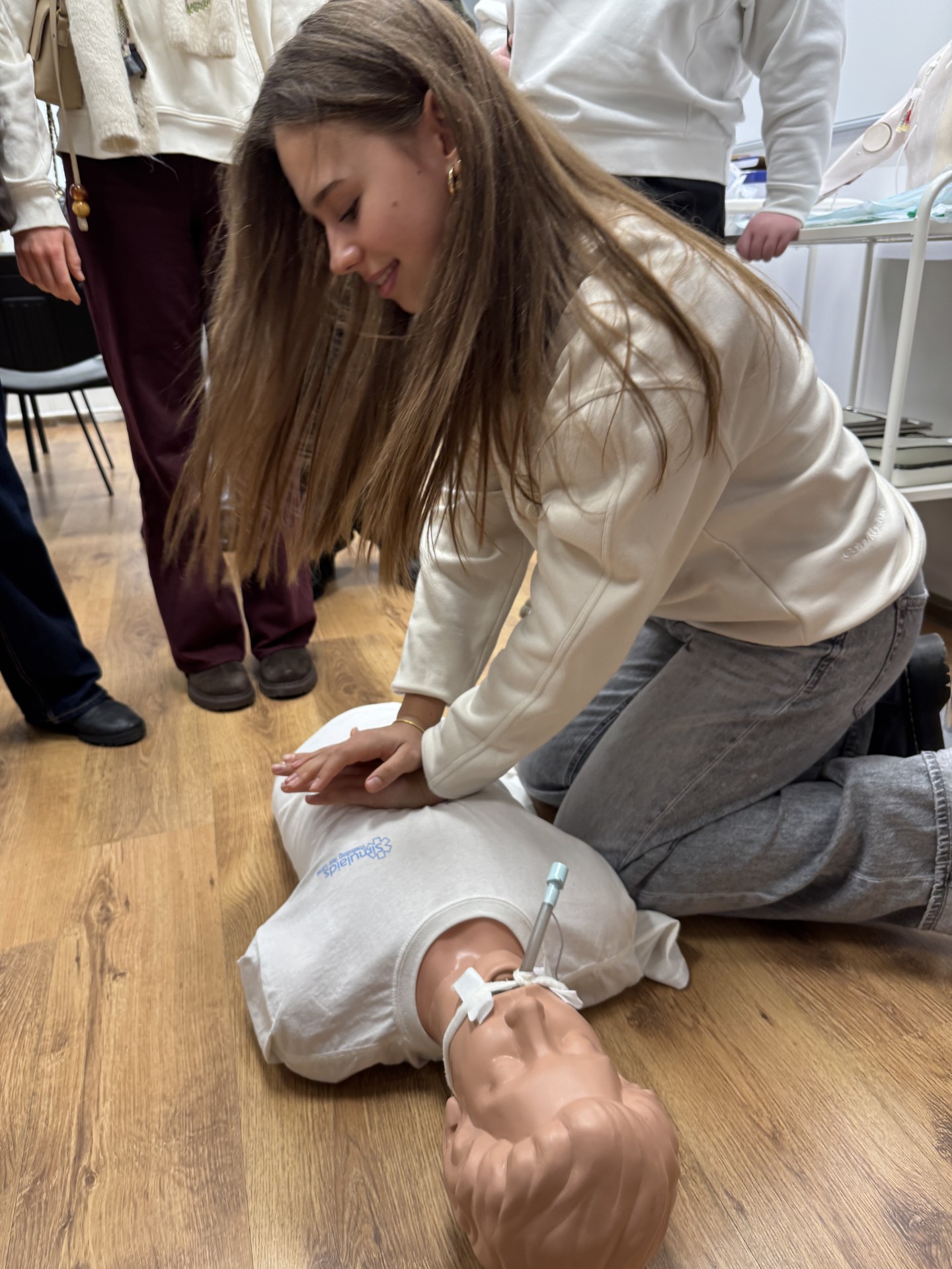 Jurgita Stankūnienė, Slaugos katedros dėstytoja, atskleidė bendrosios praktikos slaugos profesinius aspektus, kvietė aplankyti puikiai įrengtas auditorijas, išbandyti mokymo priemones, supažindino su slaugytojų darbo specifika dirbant vaikų, chirurgijos, intensyviosios terapijos skyriuose.