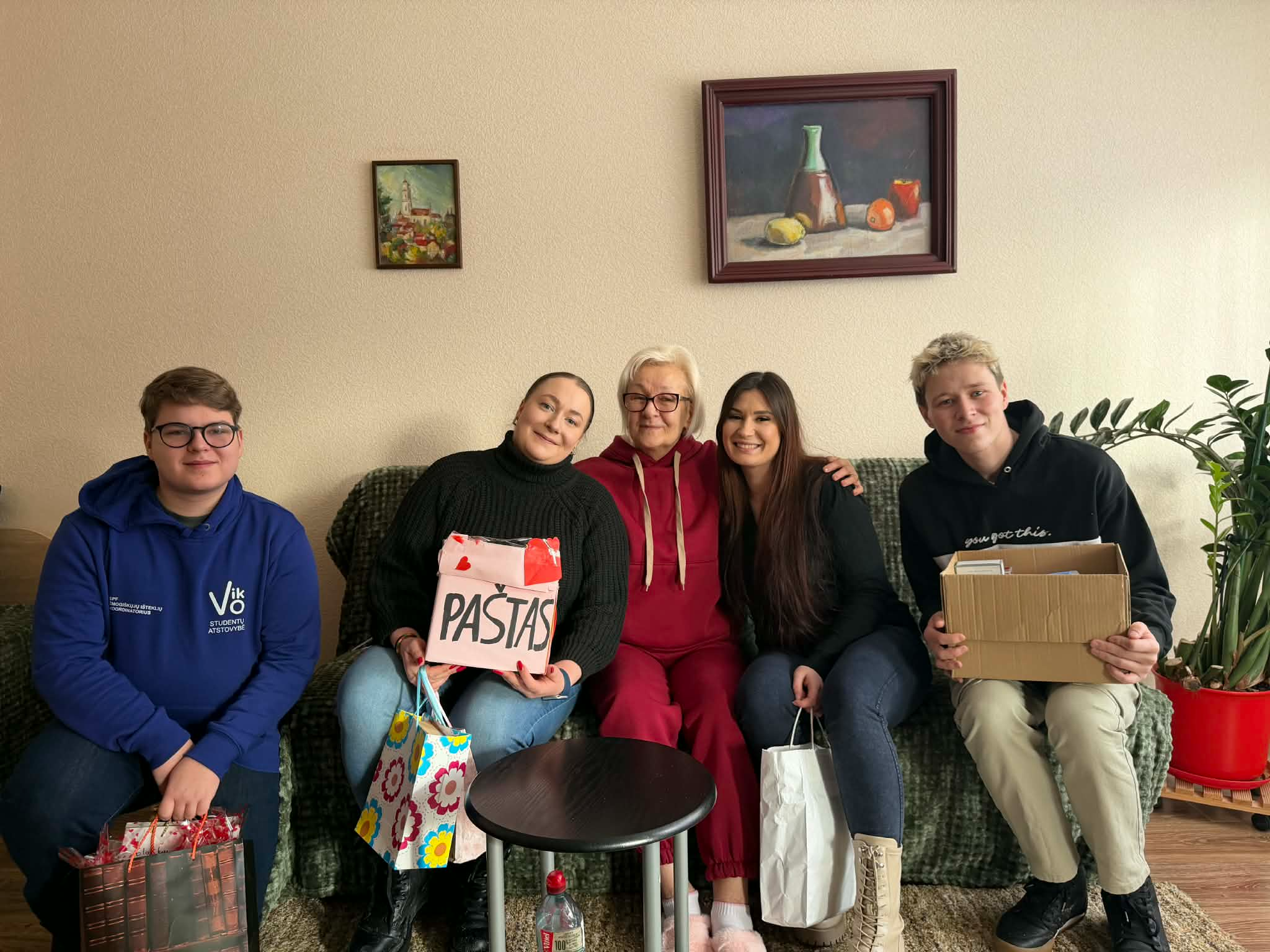Daugiau nei 50 laiškų, dar daugiau – saldumynų, knygų ir paslaptingų dovanų buvo surinkta studentų iniciatyva, supakuota, širdelėmis padabinta! Šis Meilės paštas nugabentas ir įteiktas 38 senjorams Fabijoniškių socialinių paslaugų namuose.